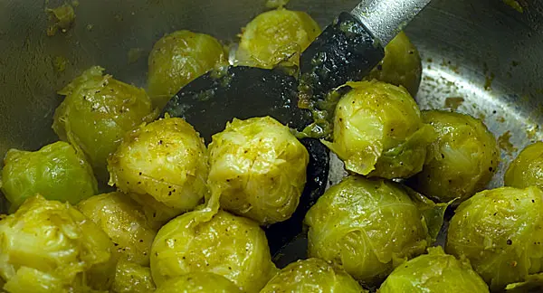 Die unschönen, äußeren Blätter vom Rosenkohl entfernen, und die Strünke kreuzweise einschneiden. Die Röschen dann in kochendem Salzwasser für ca. 8 Minuten blanchieren. Danach sofort in Eiswasser abschrecken. Die Pinienkerne in eine Pfanne ohne Fett goldgelb anrösten, aus der Pfanne nehmen und an die Seite stellen. In der Pfanne bei mittlerer Hitze etwas Olivenöl erhitzen, die Rosenkohlröschen aus dem Eiswasser nehmen und gut abtropfen lassen. Die Röschen in der Pfanne schwenken. Den Orangensaft angießen, mit Salz und Pfeffer würzen und die Röschen von Zeit zu Zeit schwenken, bis sich eine leichte Kruste gebildet hat. Der Orangensaft verdampft dazu fast völlig. Mit den Pinienkernen bestreuen und servieren.